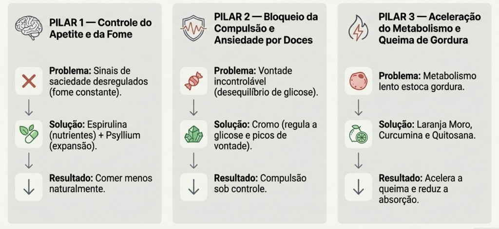 O BioSlim age nos 3 sinais que sabotam seu emagrecimento: a fome que não para, a ansiedade que pede doce e o metabolismo lento que acumula gordura. Tudo com ativos 100% naturais.